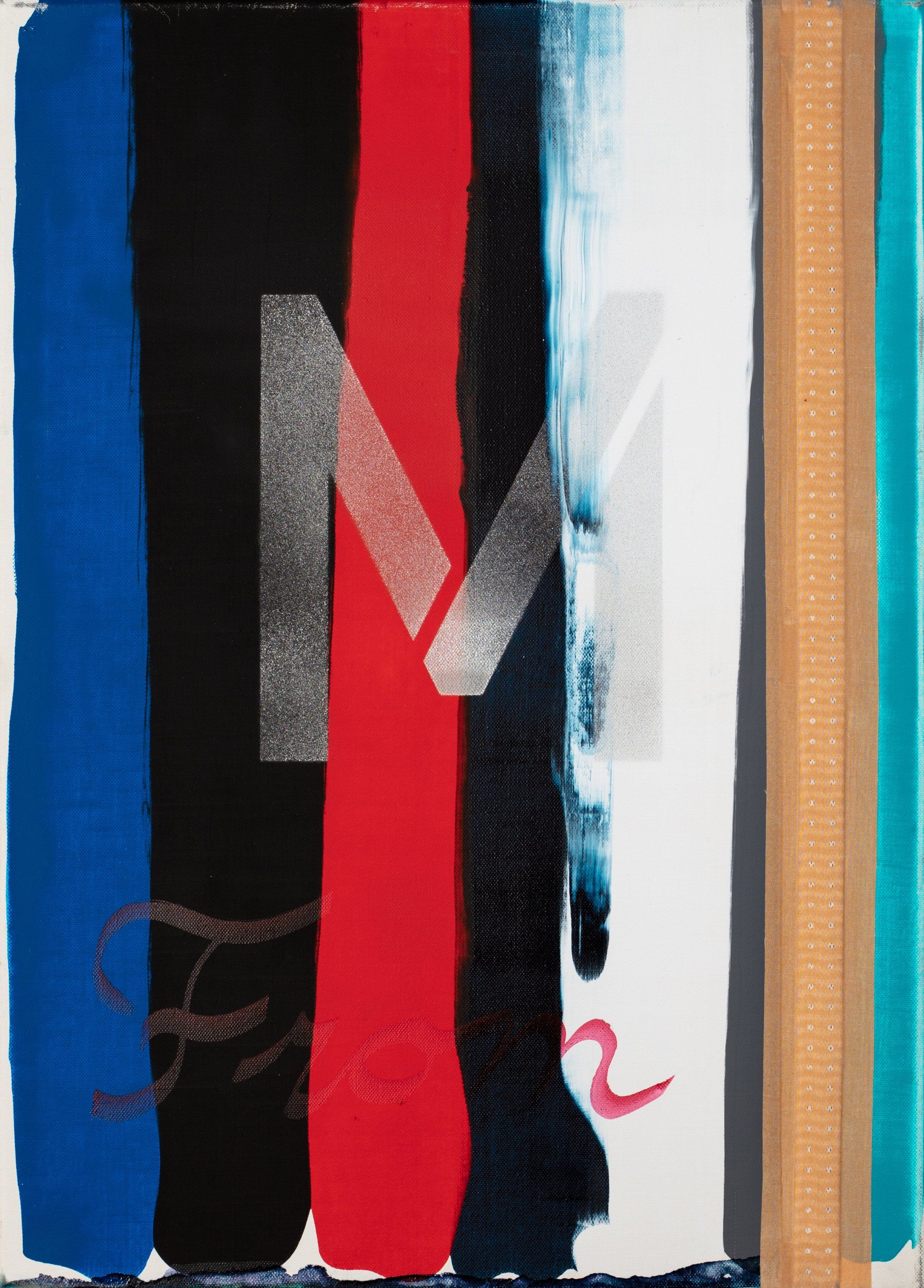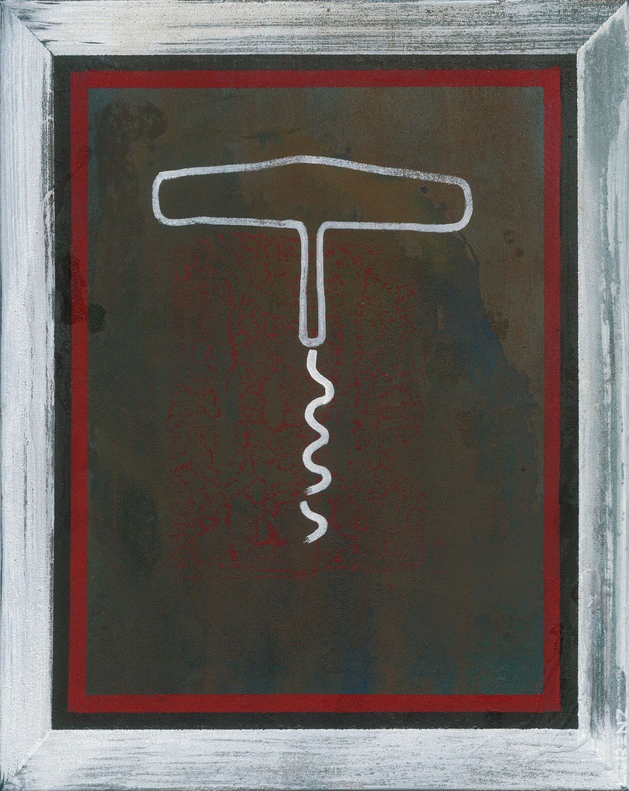 Wenn er unter dem Titel „Das Gleichgewicht“ Querstreifen auf die Fläche legt, die durch eine vertikale Linie durchbrochen werden, so ist das einerseits eine sehr schlichte, fast grafische Komposition. Es kann aber durchaus auch gegenständlich gedeutet werden – als Rückgrat, als Holzdielen, als Felder aus der Vogelperspektive.
