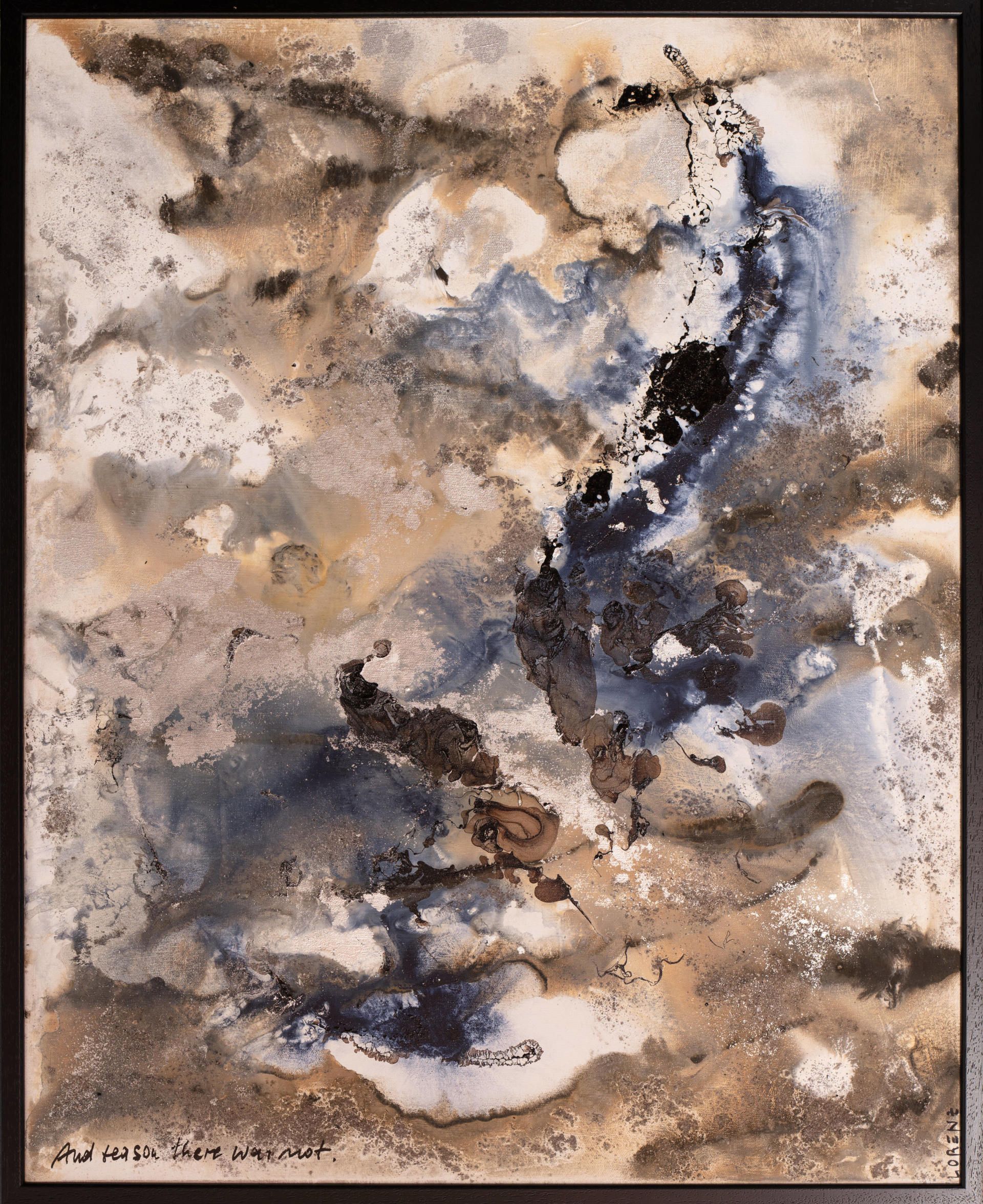 Ein wolkiges Konvolut von … Ja, wovon? Ein Stück weit Ursuppe, ein Farben- und Formen-Potpourri und damit auch ein bißchen Sixtinische Kapelle? Genau! Ein gewaltiges Durch-einander und ein babylonisches Informationsgewirr, an dessen Ende sich vielleicht alle umbringen. Nur die Ameisen bleiben.